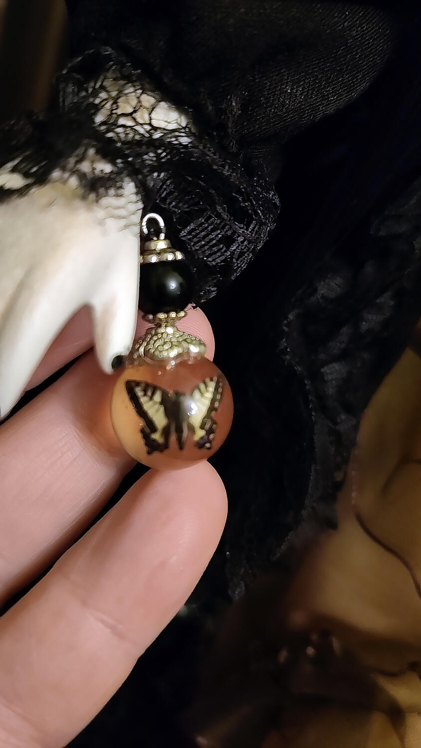 Anche la sfera l ho realizzata personalmente a mano, racchiude una piccola farfalla (realistica ma non reale) ora compagna fedele di Altea.